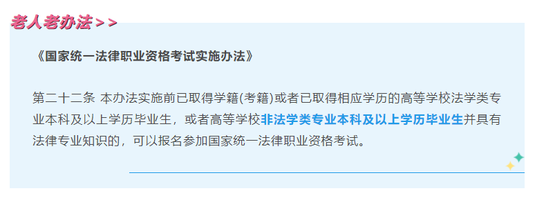 (1)只要你取得本科学籍(考籍)或毕业证,无论是不是法学专业、无论是不是全日制,都可以考!