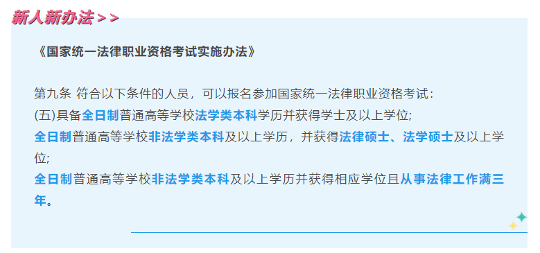 3.全日制+非法学:能够报考的方式有2种:从事法律工作满3年,或者取得法硕、法博学位。