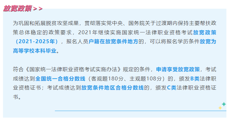 每年法考开放报名时司法部都会发布公告,详细列出全国所有放宽地区。至于分数线放宽多少,就需要你到时候留意当地司法厅官网的公告了。
