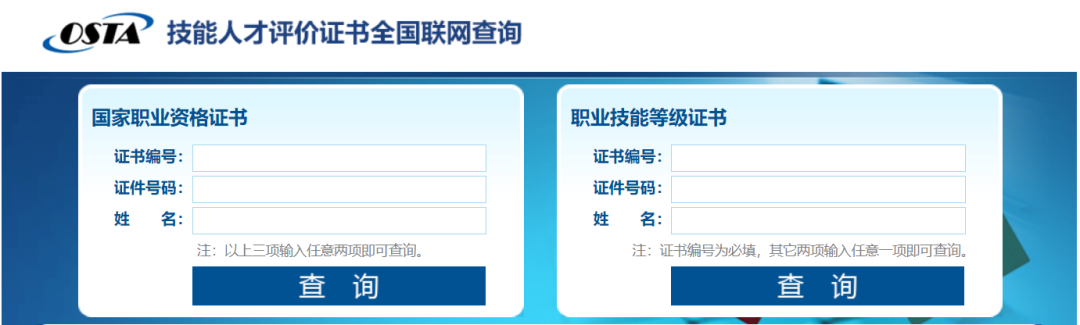资格证书辨别真假可在 国家职业资格证书全国联网 查询(zscx.osta.org.cn或 jndj.osta.org.cn)
