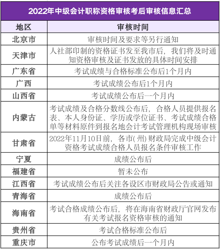 通知中明确: 重庆考区的报名资格审核方式由前审改为后审(即由报名缴费前资格审核改为公布考试成绩后资格审核)。 考生在报名时就应满足2022年会计专业技术中级资格公布的报名条件。