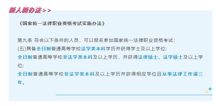 3.全日制+非法学:能够报考的方式有2种:从事法律工作满3年,或者取得法硕、法博学位。