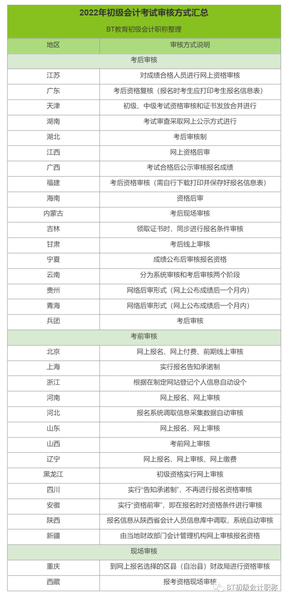 已为大家整理各地区初级考试审核方式汇总,大家注意!