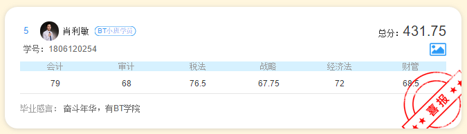 最后附上本次成绩截图,希望各位能够青出于蓝而胜于蓝,取得更好成绩!