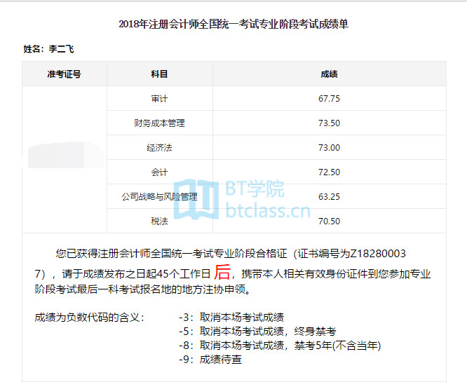 BT学院2018年CPA成绩喜报