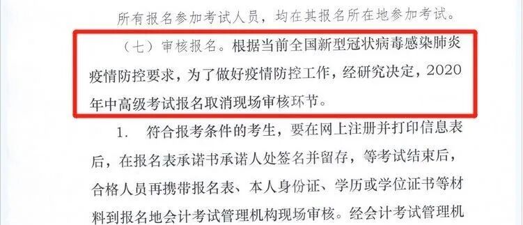 为了做好疫情防控工作,2020年中级考试报名取消现场审核环节。