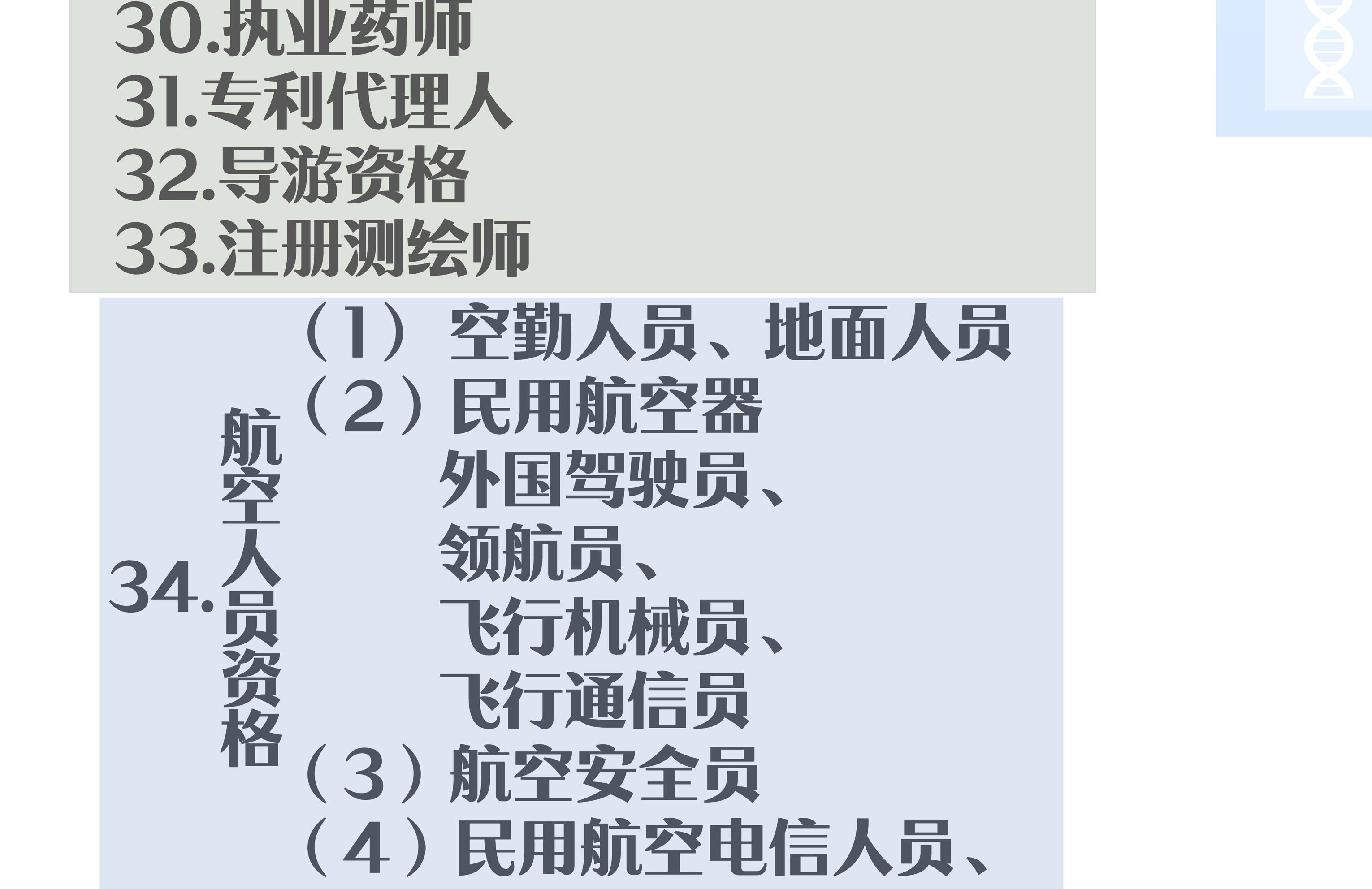 按照国家职业资格目录,准入类专业技术人员职业资格仍有35项,准入类技能人员职业资格仍有5项。下面这40项职业资格具有较高的含金量!