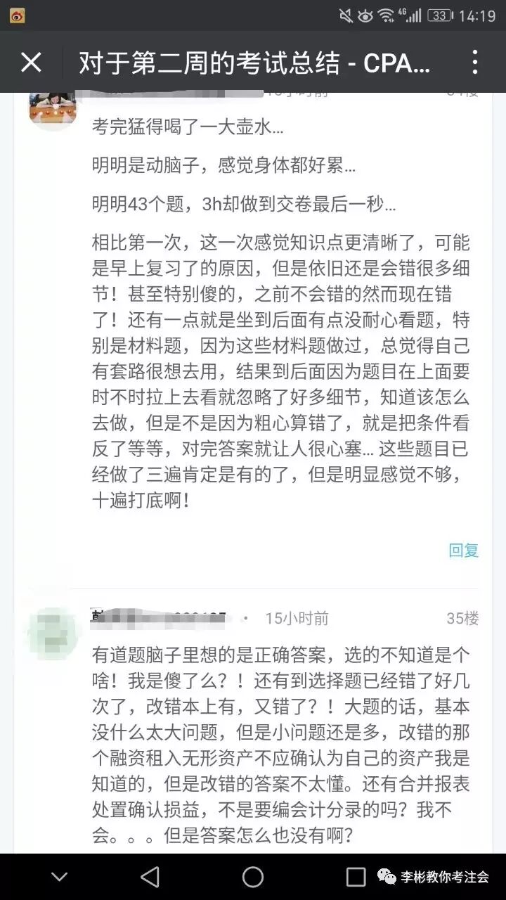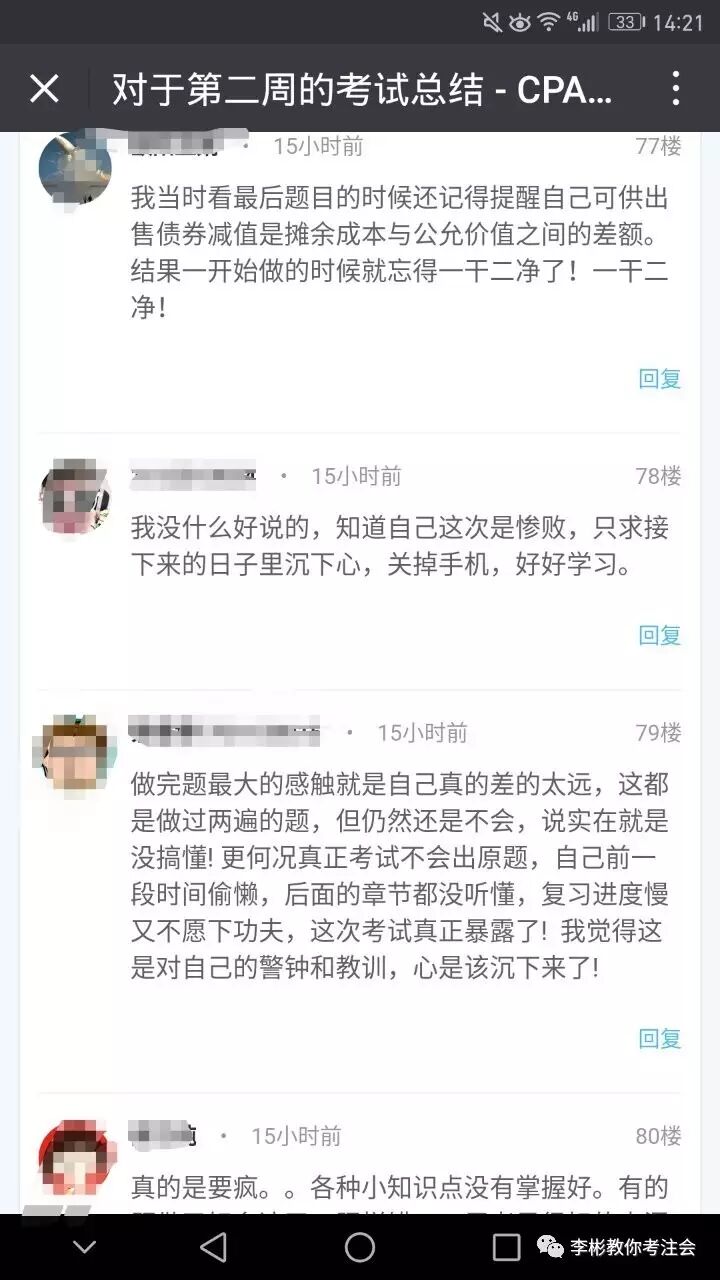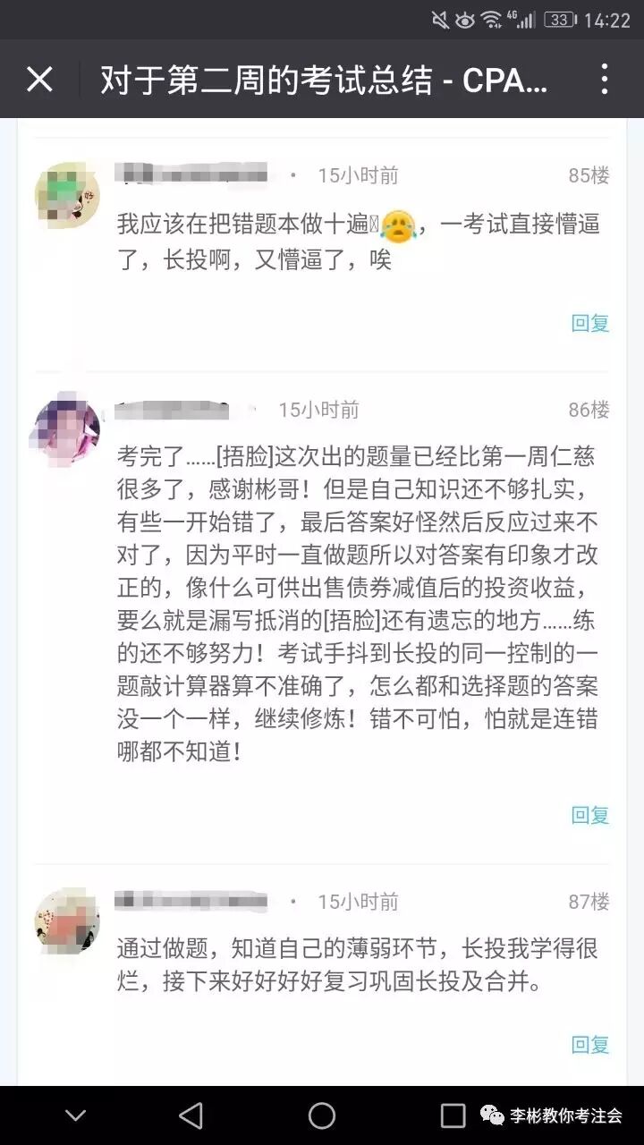 CPA备考道路很漫长,我们已经用十多天时间把别人两三个月的努力给赶上了,考试主要是用来反省自己过去的学习,调整步伐,适应心态。日后的路还很长,革命尚未成功,同志仍需努力!