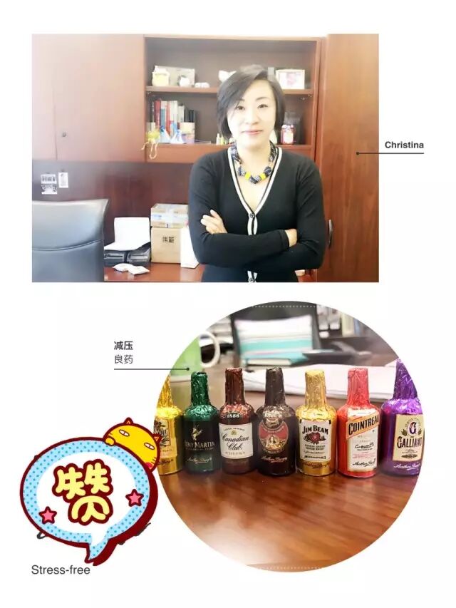 Christina的减压良方是下班之后喝一杯。