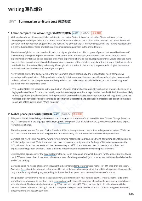 机经持续更新中,涵盖各种高频考题,分题型整理,听说读写共计600余页!满满的干货,可谓备考神器。